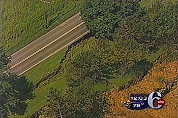 - A huge chunk of earth surrounding a quarry collapsed overnight. You can see big fissures in the ground right along side thepavement. Around 1:30 this morning, there was a rock slide at Penns Park Quarry in Wrightstown. Deep crevices can be seen right on the shoulder of the roadway. PennDOT officials say the road will be closed indefinitely. The cause of the collapse is under investigation.