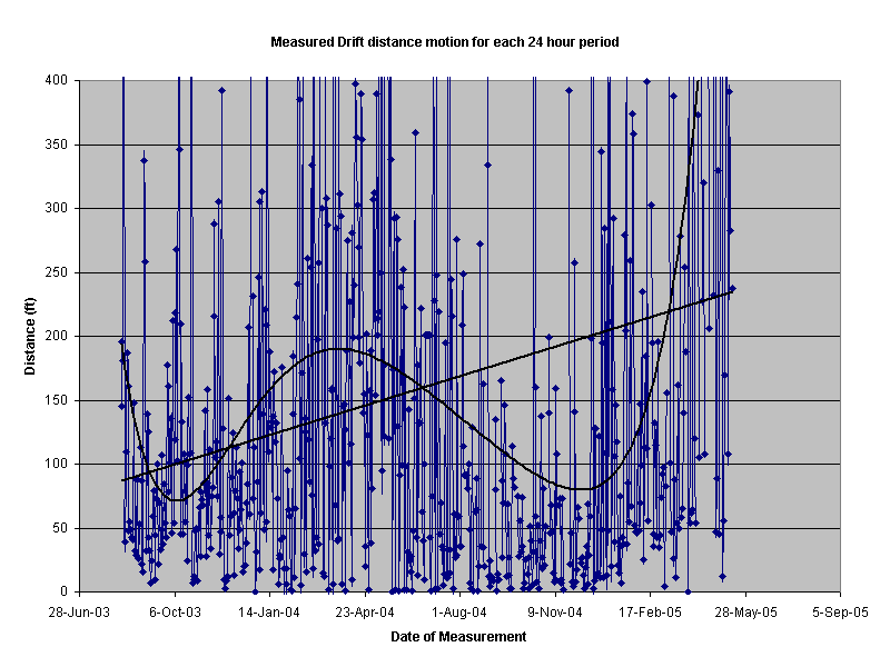 - The measured drift distance has more than doubled within the last one year and nine month time. The GPS is hanging on my kitchen wall in one position and does not move. The trip distance is measured and recorded each day. If one averages the predominant earth wobble directions motions then one gets South as the average result. The motions being measured are getting bigger with time by a factor of more than two. These measurements are over and above what is being compensated for by the regular position correction updates done by the GPS managing agencies.