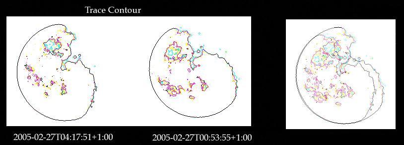 Time and again there have been posts about the rotation of the moon during one nights travel, but no one ever seems to have a camera handy. Well, I had the luck of a clear sky last night [Feb 27], so I took my cheapo 3.3 megapixel with 10x optical zoom and snaped some pictures of the moon. First at 0.55 CET, second at 4.17 CET in the east of the Netherlands. Both pics were taken with a horizontaly held camera and 10x optical zoom. I took the 2 moons, the pics full pixelsize from the cameraimage, and made a composite today, and did some image prosessing to clear up the features of the moon and stuff like that. The rapid rotation can be clearly seen. http://www.rumormillnews.com/cgi-bin/forum.cgi?read=65862 [Note: extreme rotation of the Face of the Moon has been noted for months, indicating the Earth tilted under the Moon's orbit.]