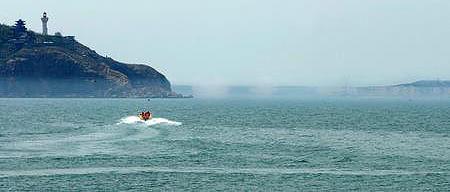 http://www.chinadaily.com.cn/china/2006-05/07/content_583576.htm- Thousands of tourists and local residents witnessed a mirage of high clarity lasting for four hours off the shore of Penglai City in east China's Shandong Province on Sunday. Mists rising on the shore created an image of a city, with modern high-rise buildings, broad city streets and bustling cars as well as crowds of people all clearly visible. The city of Penglai had been soaked by two days of rain before the rare weather phenomenon occurred. The mirage took place during the week-long Labor Day holiday. The small city received over 30,000 tourists on Sunday. Experts said that many mirages have been recorded in Penglai, on the tip of Shandong Peninsula, throughout history, which made it known as a dwelling place of the gods. They explained that a mirage is formed when moisture in the air becomes warmer than the temperature of sea water, which refracts rays of sunlight to create reflections of the landscape in the sky.