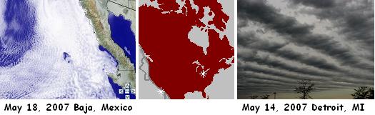 presenting, on her website, some earthquake clouds that occurred days ago off the coast of Mexico/San Diego, and above Detroit where the St