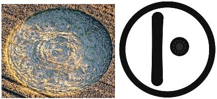 the central swirl counterclockwise, the direction of the solar