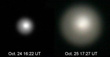 Would the Zetas comment on comet 17P/Holmes? Why this huge increase in brightness now? [and from another] Exploding Comet [Oct 27] http://www.spaceweather.com/ The gaseous cloud surrounding the comet's core more than doubled in radius on Oct. 25th. What is happening to this comet? It remains a mystery.