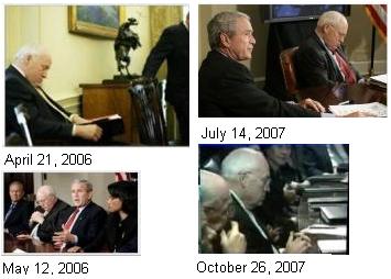 The rumors on the Internet that Cheney's heart condition is far more serious than admitted are true. What would cause a grown man, pampered and with all the conveniences he might wish available to him, to fall asleep during high level government meetings, repeatedly? Did he not get a good night's sleep the night before? Or maybe he didn't because the neighbors were throwing a party and would not turn the music down? Did he have an insomnia problem his many doctors could not help him with? Cheney is slowly dying of heart failure, and what is captured on camera is not a nap. It is a type of coma caused by the heart slowing when Cheney is at rest to the point where his brain is under-oxygenated. Carbon monoxide poisoning, which is a type of de-oxygenation of the blood and brain, results in somnambulence, or falling asleep. If up and walking about, or standing and giving a speech, the heart and blood pressure system are responding to a different set of signals, just as the heart and blood pressure system would respond if he were under attack and needing to climb a tree to escape a tiger or to escape rising flood water. When at rest, the heart and blood pressure system relaxes.