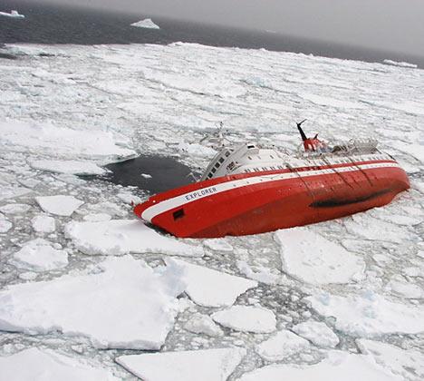Cruise ship goes down off Antarctica [Nov 23] http://www.msnbc.msn.com/id/21935099/ A Canadian cruise ship struck submerged ice off Antarctica and began sinking, but all 154 passengers and crew, Americans and Britons among them, took to lifeboats and were plucked to safety by a passing cruise ship. The Chilean navy said the entire MS Explorer finally slipped beneath the waves Friday evening, about 20 hours after the predawn accident near Antarctica's South Shetland Islands. No injuries were reported although passengers reportedly endured subfreezing temperatures for several hours as they waited in bobbing lifeboats for a Norwegian liner that took them to a Chilean military base in the region. The Explorer struck submerged ice and began taking on water through its cracked hull.