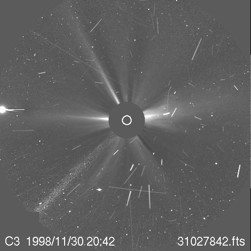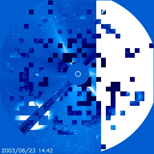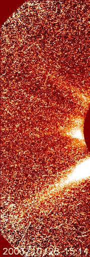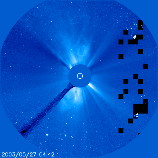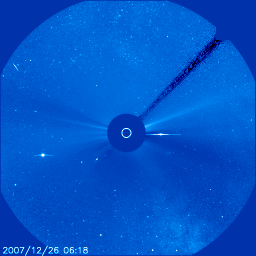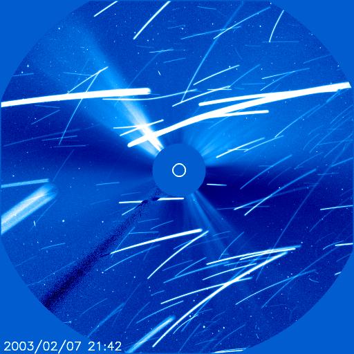 After the Christmas Hammer made its appearance on December 19-22, it disappeared for several days and the live seismographs were dead quiet. When they restarted with globals again on December 27, the global was not happening at 8:00 UTC as it had during the Christmas hammer, but hours. This would mean that the violent push against the magnetic N Pole of Earth was happening earlier, because Planet X had moved to the right. [and from another] At the same time, an object with a tail was captured on a C2 image by the LASCO satellite, just where one would expect Planet X to be if the Earth had moved to the left a bit, in the view from Earth, to escape Planet X which was now appearing on the right. Checking Skymap and the LASCO C3 images for comparison, I note that Mercury is near the Sun to the lower left at about the 8 o'clock position, but no planet is expected to be to the right of the Sun at the 2 o'clock position on December 23. The LASCO C3 takes in a larger view of the sky, six times wider than the C2 images. Thus on the C3 one can see the position of Mercury and the lack of any other planet in the area of the object with tail captured on December 23. On December 23, Jupiter is behind the Sun, fully occulted, and just beginning to emerge on December 24 at the 3 o'clock position. In any case, Jupiter shares the typical planet appearance of the LASCO images, looking like a tiny Saturn with horizontal rings. The object that appeared on December 23 had a distinct look, like a planet much larger than Mercury, much closer to Earth, and not creating the Saturn appearance with horizontal rings! The fact that they seem to have Saturn like rings is due to the same phenomena that causes stars to appear to have horizontal and vertical lines when we squint at them in the night sky overhead. But this object captured on December 23 has a distinct tail drifting to the left. Could this be a meteor shower? This is not the pattern of a meteor shower captured by LASCO, as these examples from November 30, 1998 and February 7, 2003 and September 12, 2003 show. LASCO also suffers from proton bombardment, but the object with tail captured on December 23 does not look like a proton bombardment either, as this example from October 28, 2003 shows. Packet loss, which is caused by light overload, also has a distinct pattern on LASCO, as these examples from June 23, 2003 and May 27, 2003 show.