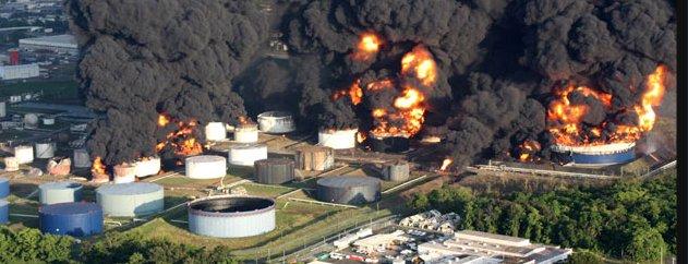 Despite rumors of an airliner missing or a small plane crash, both of which proved to be untrue, and despite a report of graffiti posted after the explosions, the cause of the massive Puerto Rican fuel storage tank explosion remains unresolved. There were no earthquakes in the area at that time. No terrorist group claimed responsibility and all business, including tourism, returned to normal promptly. The authorities clearly do not anticipate that terrorism was the cause. The facilities were in good working order, with no violations cited. Several tanks were involved, exploding seemingly simultaneously or in a domino affect within a short time frame. What should be noted is that it would only take one tank explosion to set off a domino effect, as the heat from a single exploding tank would expand and rupture piping in others.