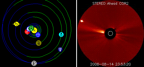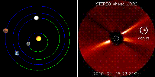 This is similar to a bright object discovered in the archives for the period around August 15, 2008, moving left to right in the COR2 images, and both these times coincide with when Venus would be expected to be on the opposite side of the Sun in line of view of the COR2 cameras.