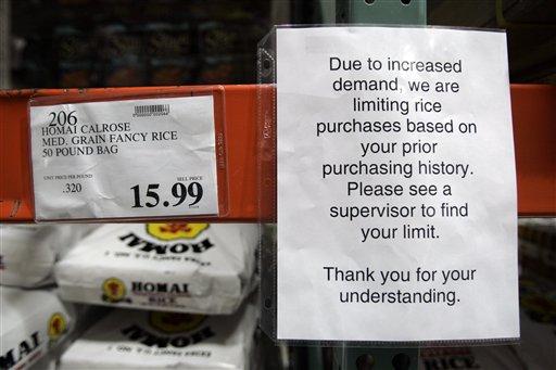 of the world, with Costco and Sam's Club forced to limit purchases of rice.