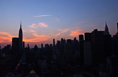 - It is midnight on 22 September 2012 and the skies above Manhattan are filled with a flickering curtain of