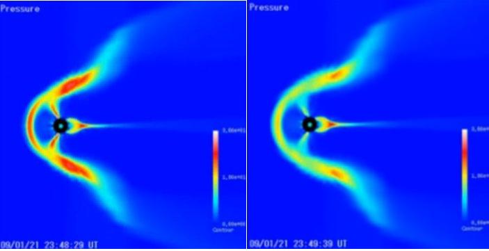 Once again the bowshock is skewed, what can skew it so much? Seems to be getting worse. The only thing that I know that can affect a magnetic field like that is another magnetic field or electrical current.