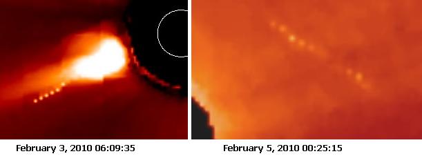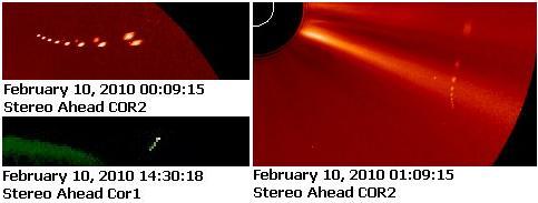 COR1 images on February 10, 2010 at 00:09:15 UTC and 01:09:15 UTC on COR2 and February 10,