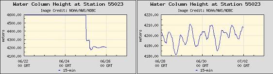 This has become more extreme. The buoy indicated a sudden 400 foot drop in water depth, from 4600 to 4200 feet, and