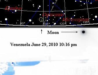 tilt has, if anything, gotten worse. Photographs from Venezuela show the position of the Moon on June 29, 2010 at 10:16