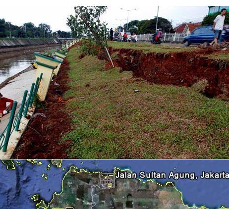 Jakarta, suffered the same fate. Levee three-meter-deep sinkhole is, not only that the