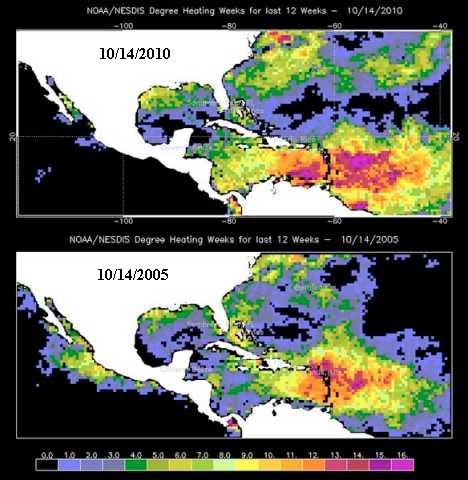 Observation: you will see that the high ocean temperatures correspond exactly to the eastern