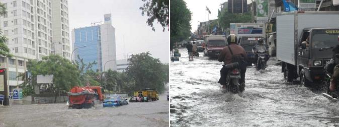 flooded to a depth of the adult knee, with "stagnant" flood waters that have "yet to ebb". East Jakarta District Court had to