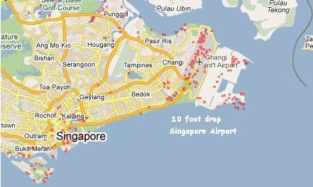 The Singapore Airport has an even lower elevation, and shows vulnerability at the 20 foot elevation level, but likewise could
