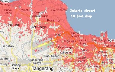 As Indonesia steadily sinks, there are two airports at particular risk. The Jakarta airport is a mere 34 feet above sea level,