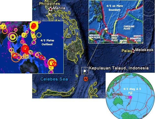 outlined. The Indo-Australian Plate rising at New Zealand was outlined. Kepulauan Talaud, Indonesia had a series of quakes