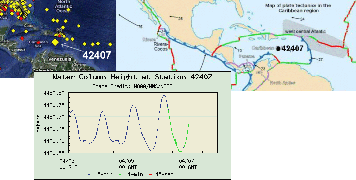 42407 south of Puerto Rico. Once again, the buoy is alerting us to plate movement, in this case the lifting of the northern side