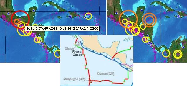 This was accompanied by quakes along the Caribbean Plate border and at Chiapas, Mexico where the Cocos Plate pushes