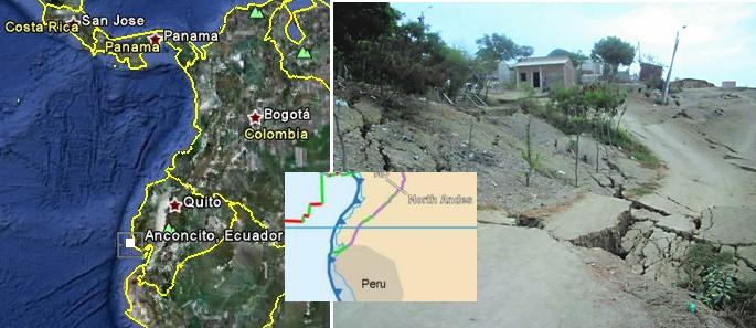 And the coastline along Ecuador shows the effect of land on the pushing edge being pushed over the Nazca Plate. Anconcito
