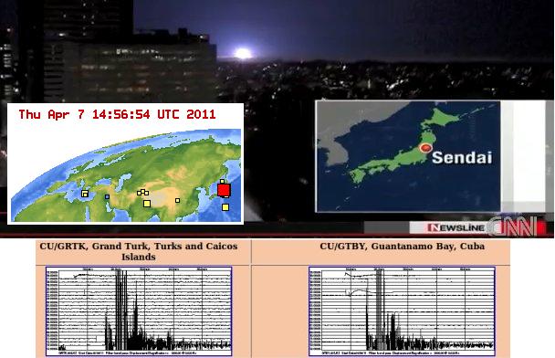 Now back to Asia, where on April 7, 2011 the Japan region had more quakes, a 7.4 in Sendai, where earthquake lights