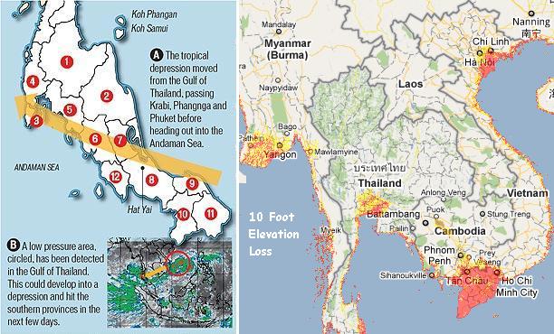 tropical depression, then why are all the neighboring countries with a similar elevation not flooded too? Vietnam south of Ho Chi