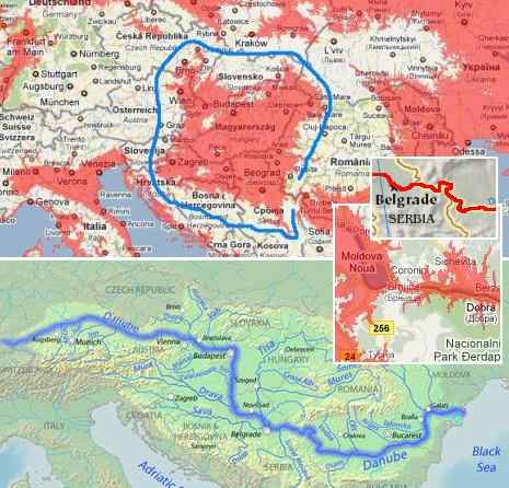 Within 2 years after the PS the water will rise 675 ft. and a Great Lake will form in Europe where now Hungary is. But there is a bottleneck at the Romanian border, so the water from the Black Sea is retarded. I computed that this lake will have nearly 20 000 cubic Kilometers. I made a grid on my monitor and counted the red fields in steps of 10 Meters - don't laugh! The river Danube would need about 94 years to fill it up theoretically. It would be useful to know how many years from the PS it will take for that Great Lake to reach the 675 ft level. Could the Zetas please make an educated guess?