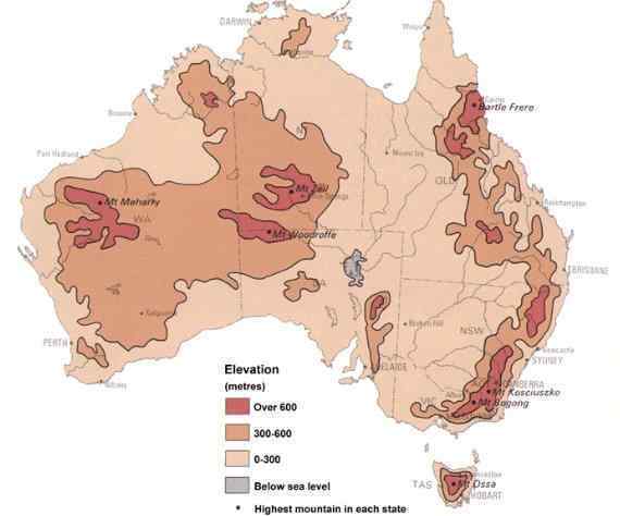 I was wondering the Zeta's could say as to how far will the western 2/3's of Australia drop below sea level. I guess the Western part of this 2/3's will be more than the eastern 2/3's - and as there are areas that are fairly high would these end up being islands where people could head for if they can't relocate early enough. [and from another] http://www.ga.gov.au/education/geoscience-basics/landforms/elevations.jsp Mawson Peak, Heard Island, 2 745. Mt Kosciuszko, NSW, 2 228. Lake Eyre, SA, 15 m below sea level.