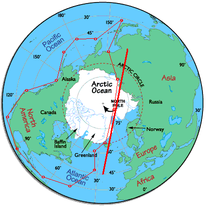 It is impractical to think in terms of distance between cities on differing continents, as travel between such points will be impossible in the Aftertime. The most practical way of locating your new latitude is to locate the distance from your nearest new pole. For Portugal, of course, this is the new S Pole which will be where southern India is located today. There will be scant adjustment between these two points, and though the Red Sea will spread somewhat, this is not a massive difference from the distance that exists today. All of Europe, Russia, the Middle East, Africa, China, and Asia can compute their future climate in this way. Australia and New Zealand should likewise compute their new latitude in this manner, making a slight allowance for a portion of the Indo-Australian Plate having pushed under the Himalayas somewhat. Other lands can compute their new latitude from their distance from the new Equator. Alaska, Antarctica, Greenland, Iceland, and northern Canada can assume a tropical climate and latitude based on the new Equator virtually passing either through their landmass or close by. For the Americas, the location of the new N Pole is key. This suffices for S America which will remain intact through the pole shift. For N America, which must account for the crumbling Caribbean Plate, the best calculation is a combination of computing where the new Equator rides in the Bering Straits and the distance from the new N Pole off the Bulge of Brazil. Where the two ends do not meet, then assume the new N Pole to be closer to you than the distance on today's map would compute. The N American continent will not stretch or expand, except for a slight increase in the width of the Seaway.