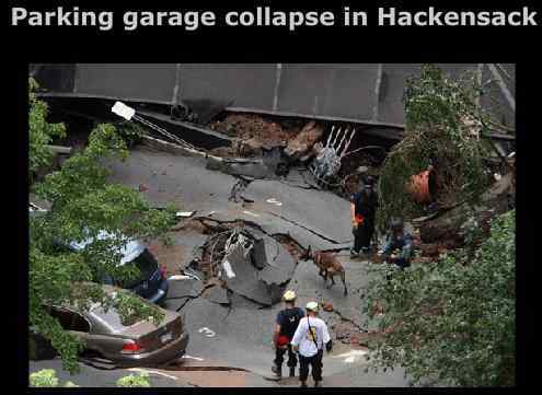 The northwestern suburbs of Washington DC experienced a small earthquake on July 16th. Since this area historically has experienced little earthquake activity, what can the residents of suburban Maryland, northern Virginia and Washington DC expect in terms of seismic activity during the New Madrid adjustments and the months preceding the pole shift? [and from another] No One Trapped At 2nd NJ Parking Garage Collapse [July 18] http://wcbstv.com/topstories/collapse.garage.collapse.2.1810353.html One day after a parking garage caved in, there's more rubble in Hackensack after a second collapse. The first collapse happened Friday morning when a glass atrium fell on top of the garage, causing a pancake effect.