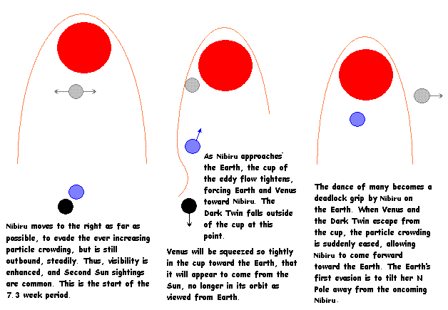 In the ZetaTalk chat on 14th of May 2011, Zetas have mentioned that poleshift would occur when earth gets push back counterclockwise from the June position into the August Position. Does it also mean that this scenario would happen during the last weeks when Planet X moves to the far right towards Earth trying to evade the ever increasing particle crowding while both Venus and the Dark Twin escape from the cup? Is it possible to know where Venus and Dark Twin would end up relative to the sun and earth when they escape the cup?