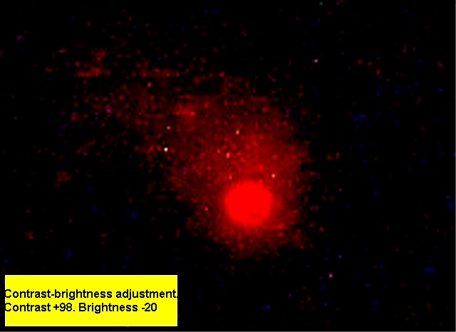 - It looks like people are getting pretty excited on the godlikeproduction forum over Kid A's image. Apparently he used a digital camera with binoculars to get this picture. Many there say this image does not appear to have been tampered with at all, or if it was that it is an extremely good fake. The picture was taken at Chapel Hill, NC, April 13. I still have not personally detected Px. Neither have many of my friends. Lousy atmospherics last two weeks. However, this photo taken by a Kid A has my attention. I am very conversant in Photoshop and tried everything I know to detect hoaxing. I could not. I then did a few contrast studies and threshold studies [below]. If it's a hoax it's a good one. Note the helical trailing objects... just as predicted. The dust cloud occludes starlike objects in varying amounts at a distance from the main body. If this is real it fits descriptions.