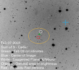 - I think the object that shows up just below the Feb 9 coordinates may be Planet X white. It looks like from Pierre's location finder that Planet X really starts moving after Feb 9 so it may prove more challenging finding Planet X in between the coordinates dates.