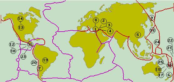 Date Location No. Lat. Long. Mag. 8/17/99 Turkey 1 40.70 29.98 7.6 Turkey 2 40.70 30.59 5.0 Turkey 3 40.78 30.08 5.0 Turkey 4 40.63 30.70 5.3 Burma 5 29.37 105.61 5.1 8/18/99 New Zealand 6 -37.25 177.27 5.8 Chili 7 -30.79 -71.65 5.1 8/19/99 Turkey 8 40.58 29.07 5.0 Japan 9 43.04 146.96 5.0 8/20/99 Tongo 10 -25.78 -179.68 5.3 Costa Rica 11 9.20 -84.09 6.9 Costa Rica 12 9.21 -84.04 6.7 Idaho 13 44.87 -112.73 5.3 Idaho 14 44.78 -112.77 5.3 Tongo 15 -21.59 -174.45 5.1 Japan 16 34.06 135.37 5.7 8/21/99 Tongo 17 -20.50 -173.70 5.7 Costa Rica 18 9.06 -83.94 5.4 Brazil 19 -58.16 -13.21 5.6 8/22/99 Peru 20 -40.42 -74.82 6.3 Tongo 21 -16.10 167.92 6.2 Tongo 22 -16.10 167.92 6.5 Costa Rica 23 8.99 -84.01 5.3 Guam 24 13.86 145.51 5.1 Tongo 25 -15.24 167.81 5.1
