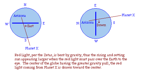 For instance, in Arizona, one would expect the red light to bend DOWN toward the Earth as something from the southern constellations must come over the Equator, going north. Was it a tad LOWER in Declination? One might also expect it to be somewhat off in RA as it would pull toward the middle of Earth, depending upon what horizon it was beaming in from. I assume it would pull toward the CENTER of the Earth where the greatest gravity tug would be from. Would that be EAST?