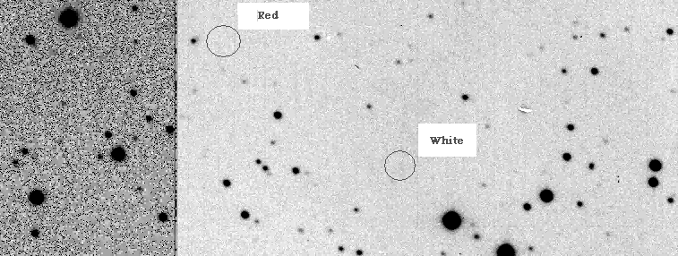 - The spot I circled shows up on most of the images but obviously shows up best on the Sum. Nothing shows up in that area on the NEAT images and nothing positive I can really make out on the DSS. You can see there is nothing in those mentioned areas on the NEAT image but all other stars show up much better than on Naji's images.
