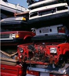 sight - the remains of a car recycling junkyard where cars have been piled