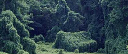 kudzu cascading down the sides of the piles, all now covered with creeping
