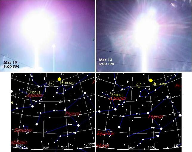 Photo's taken today Saturday 13th march 3:00 PM approx 310° West and approx 45-50° alttitude. Funny though as the other day the alttitude was 30° or so higher, I can't have been that wrong as I am not that bad at estimating. By looking at the photo's from the other day that I had sent, this change could be true as I usually stand in a similar position. Both sets of photos are from the same time.