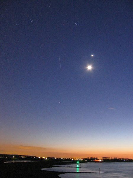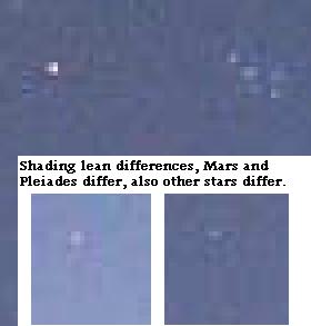 The Original from the second available for download. The blowup at right is from Nancy, who noted that the shading lean for Mars was to the lower left, in the Pleiades to the upper right, but for other stars in the photo the lean is to the lower right consistently! Mars and Pleiades separate pastes from separate sources, perhaps. In addition, the shading in the other stars is more subtle, with Mars and Pleiades having strong contrast in the surrounding pixels.