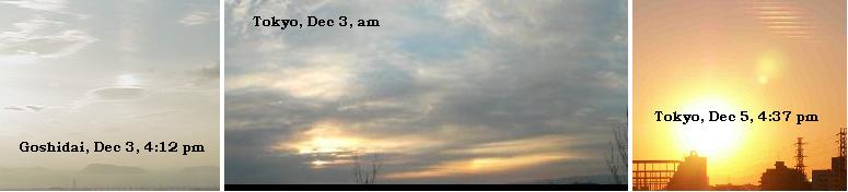 - Is this Planet X? This first (at left) taken in Goshidai, Japan on Dec 3 at 4:12 PM. The second (center) taken in Tokyo on Dec 3, in the morning. The third (right) in Tokyo on Dec 5 at 4:37 pm. [and from another] Note both morning and evening, a light orb increasingly seen naked eye is captured to the right of the Sun. In the photo on the left, the Sun is off camera to the left. In the photo in center, it is possibly a sun dog but the halo does not appear elsewhere around the Sun. In the photo at right, the tail is shown blowing away from the N Pole of Planet X. As Planet X swings its N Pole around to the right, the Earth is pushed to the left to escape, thus the view to the right of the Sun. As the tail blows out from the N Pole of Planet X, this trash will likewise increasingly come toward Earth too. More fireballs. Per recent Polaris measures (see Sign #1517), the Earth is falling to its side slightly, N Pole to the left, as predicted by the Zetas over a year ago. [and from another] Meteorite turns on sky show for WA [Dec 4] 'The Sunday Times was flooded with calls from many who witnessed the show from vantage points across the state. Shaken witnesses told of blinding light, trembling houses, brilliant colours and fears of the meteorite landing. The spectacular display was seen from Perth to Kalgoorlie and south to Albany, as well as in the north.' [Note: multiple evidence of Planet X swinging its N Pole around to the right]