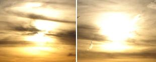 These photos were taken in West Kentucky on Dec 2, around 4:00 PM. Here is another taken 15 just minutes before. [and from another] This stacked Sun is another type of Second Sun photo, where Planet X appears somewhat above the Sun. [and from another] Three weeks ago I was traveling southwest on US Rte 42 just after a rain. The clouds were still dark but breaking up. At about 5:00 PM I watched the Sun go behind one cloud and just slightly northwest was another object about ¼ to 1/3 the size of the Sun which was visible because the sun was blocked. I assume that was Planet X.