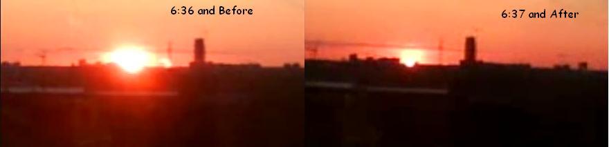 A 6:37 there is another break in the filming. The Second Sun has set, but the Sun has not completely set as yet, again showing