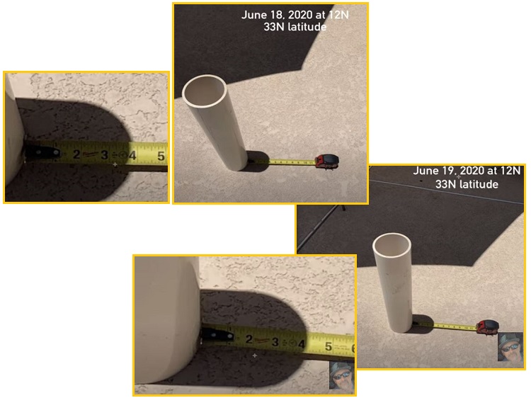 the Sun’s shadow at exactly the same time at 12 Noon and from