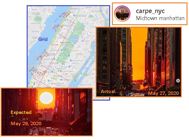 Manhattanhenge was to happen on May 29-30. One cannot find any