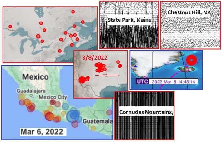 On March 10 the downward pressure on the Cocos Plate had pushed the Cocos into the Triple Junction of the Nazca, Pacific, and Cocos plates. Soon the cumulative pressure downward will tug the hard rock on the West side of the town of New Madrid sufficiently that it will rupture there. That is the big jolt that will start the New Madrid Fault Line rupture throughout. By March 11 it became evident that the Mainland was shifting to the West as well as South, thus the many quakes in the mountains in the West.
