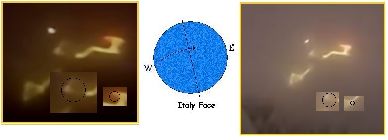Another proof that the complex in the video from Israel is Nibiru is the size differential. Nibiru is 4-5 times as wide as the Earth, and the Dominant Moons are Earth size. That is the case in this Israeli video! Another clue is where the Sun is shining on the body of Nibiru. Where we do not have the time of day for this video capture, it appears to be very early dawn. At that time the Daily Earth Wobble leans the N Pole to the East, pulling the normal 4 o'clock position for Nibiru up toward 2 o'clock.